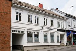 | 19 | Gnr. 3020/1443. L. Aanerød åpnet kolonialforretning her i 1899. Overtatt av brødrene Thomas og Herman Torgersen i mai 1917 og drevet som «L. Aanerød's Eftf.» | |
