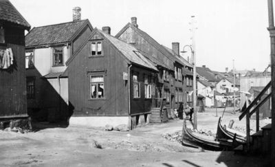 Et flott bilde fra Nerstranda ca. 1910-15. Martha Brox drev tydeligvis café i nr. 4 på denne tiden. Og fjæra gikk helt opp til gata.