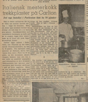 | Grands kjøkkensjef, Nicola Castracane, har bodd i Norge siden 1937 og er nordmann så god som noen. Men hans fedreland er Italia. Der fikk han sin utdannelse i de grevelige herskapshus fra han som 15 års gutt gikk ut i arbeidslivet i 1928. I 1950 kom han til Grand og ble kjøkkensjef i 1953.[6] | ||