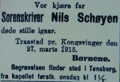 - Aftenposten 26. mars 1915, nekrolog.