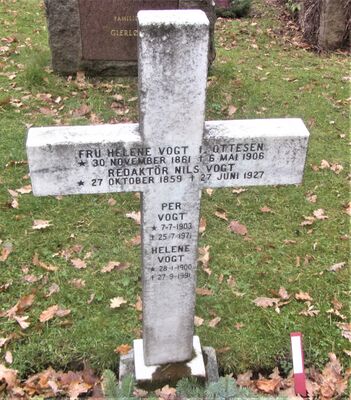 Nils Vogt er gravlagt i familiegrav på Vestre gravlund i Oslo. Tittelen Redaktør er benyttet på gravminnet.