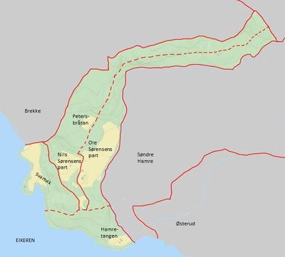 • Daniel Halvorsens andel, med skyld 1/2 lispund. Dette var plassen Hamretangen, som seinere ble solgt til nabogården Hamreenga (LN 196) og deretter utskilt som matrikkelløpenummer 196b.