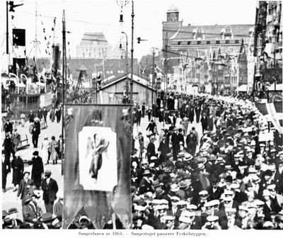 Sangerfanen av 1863 er ikke bare en fane, den er selve symbolet på mannssangens tilblivelse i Norge, og ble laget til «alle sangere i Norge» og overrakt sangerstevnet i Bergen i 1863 av Bergensfruene som hadde produsert den. Fanen ble oppbevart av de tre eldste sangforeninger; Studenternes, Handelsstandens og Haandverkernes som i 1863 representerte hovedstaden og fikk fanen til oppbevaring. På forespørsel fra forbundsstyret ble fanen utlånt til Landsforbundet for bruk på Landssangerstevnet i Bergen 1926.