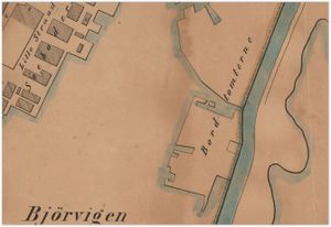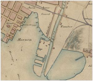 - Sommeren 1851 tilbys "Ved Udløbet af Akerselven (udenfor Tostensens Kran) er en stor Tomt med 2de Pakboder, hvortil Skibe kunne lægge ind, tilleie.". Tilbudet signeres J. H. Schwensen.[3]