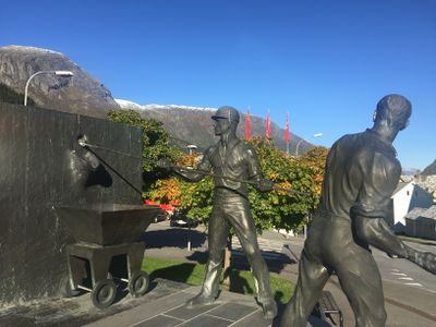 Skulpturen «Smeltearbeideren» av Oddmund Raudberget ble avduket i 1989 og henspiller på smelteverket.