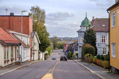 Gata er oppkalt etter byens grunnlegger, kong Olav II Haraldsson. Den følger det som tidligere var E6' trasé gjennom Sarpsborg, og har utvidet bredde mellom Ringgata og Roald Amundsens gate.