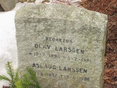 Olav Larssen er gravlagt på Vestre Aker kirkegård i Oslo. Tittelen Redaktør er benyttet på gravminnet.
