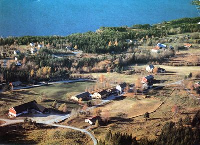 Foldsæ med den samanhengande bygningsrekka. F.h. Dovrehalli, matsalen, festsalen Elghalli, internat/elevbygget Roanhalli og internatbygget Foldsæhalli. I nedre kant av jordet til høgre ser ein verkstaden som vart bygd som tilbygg til sag-/snekkarverkstaden. Driftsbygningen peikar seg ut sjølv. På bakken ovanfor, nærare fotografen, er jenteinternatet Solhaug med stabburet i nordre kant. Heilt til høgre i biletet er lærarbustaden Solstad. Dei andre husa er eldre. Vegen frå driftsbygningen mot fotografen leiar opp til dei tre utleigehyttene. Dei to andre er oppe i lia mot fjellet Roan. Denne vegen leier og til settefiskanlegget mot syd.