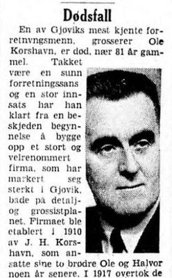 Ole H. Korshavn var først ekspeditør og reisende for brorens forretning, men i 1916 solgte John forretningen sin til brødrene Ole og Halvor. Dette ble starten på firmaet O.H. Korshavn ved Gamletorvet på Gjøvik. Butikken satsa på manufakturvarer, og retta seg inn mot det breie laget av befolkningen.