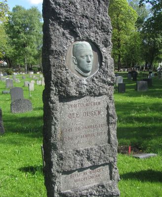 Olsen er gravlagt på Nordre gravlund i Oslo. Gravminnet, i form av en bauta med portrettrelueff i bronse, har påskriften "Reist av Norges idrettsmenn". Det ble avduket høsten 1924.