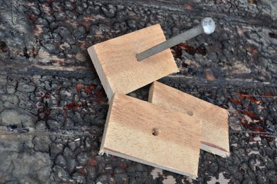 At resten av planken ikkje vert festa permanent når han vert lagd på har årsak i at det skal brukast trenaglar. Dei går gjennom huda, spanta og garneringa, i tillegg skal det innborast for støytbolt i neraste tømmer til skøyten på alle hudplankar. På ein 60 fots båt er støytbolten av ½ tomms galvanisert jern og går gjennom hud, spant og garnering, og vert klinka i begge endar. På utsida innsenka og proppa. Når det vert bora for og slege inn trenaglane vert hudplanken virkeleg pressa til spanta og sit fast. Skalmeboltane som var nytta i fyrste fase kan no takast ut, det skjer ved at skalma kan kløyvast og ein dreg ut bolten med eit kubein. Skalma si oppgåve er å gi plass til kubeinet.