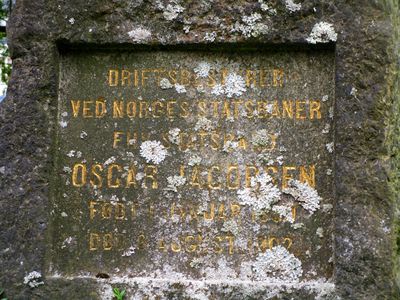 Oscar Jacobsen er gravlagt på Vår Frelsers gravlund i Oslo. Gravminnet bærer påskriftene Driftsbestyrer ved Norges Statsbaner og Fhv. statsråd.