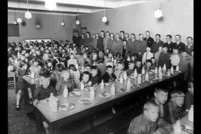 Som en del av det filantropiske arbeidet hadde det fra 1880-årenre blitt servert middag til skolebarn i Kristiania. Dette var kun et tilbud til barn fra familier med dårlig råd, men det ble under første verdenskrig vedtatt at dette skulle gjelde alle som ønsket det.