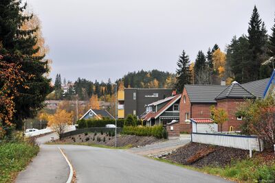 Ospelia. Bygrensa mot Oslo følger veiens venstre side.
