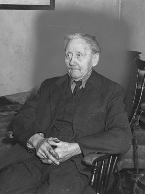 Husmor Karoline Eilertsen, arbeider Anton Olufsen, (1957).