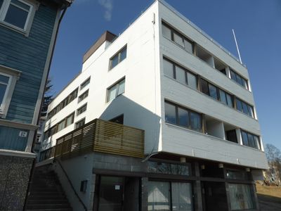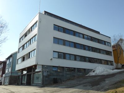 Parkgata 14 i Tromsø ligger på hjørnet mot Haakon den gamles gate. - Tidligere navn Nedre skolegate 14, gammelt matr.nr. 696.