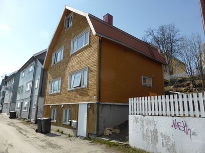 Parkgata 8 i Tromsø har, som sine naboer, flott utsikt over byen. - Tidligere navn Nedre skolegate 8.