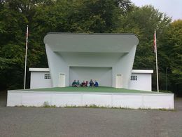 En paviljong i sveitserstil ble oppført i 1870. Den nåværende paviljongen ble tegnet av Larvik-arkitekten Sverre Narve Ludviksen i 1934. Paviljongen hadde amerikansk betongarkitektur fra Hollywood (Hollywood Bowl) som forbilde. Den ble anlagt i 1936.
