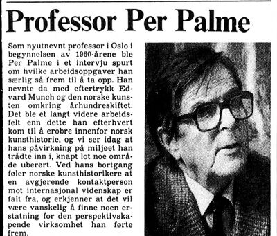 - Aftenposten 9. november 1961: intervju med Per Palme ifm. utnevningen av ham til professor i Oslo.