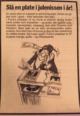 - Fona Radio Tv Musikk, (Asbjørn Dalsbø, ansatte: Geir Ytterstad, Arne Olaf Johnsen, Jan Erik Søreng, Arnfinn Kristoffersen, Edny Ingebrigtsen), Storgata 41 (Tromsø) – feb 1977-aug 80