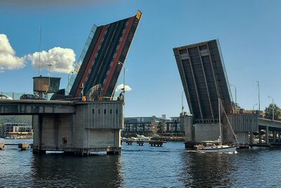 Disse bruene har samme konstruksjon og styringsmåte, bygget i betong med dobbelte klaffer av stål med motvekter, og en spennvidde på 38 meter mellom hver svingaksel. Fundamentet er pælet til fjell. Elektronikk og hydraulikk er installert på vippebrua, som også er fornyet med blant annet fire nye el-motorer, to til hver av klaffene som heises opp ved bruåpninger.