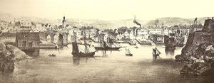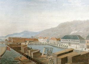 Borgerne i byen hadde kontroll med handelen, spesielt ble utenrikshandelen en viktig inntektskilde. Ifølge reisebeskrivelsen til Clarke var folk i Drammen mer velstående enn folk i Christiania, og de førte en mer tilbaketrukket og privat form for livsførsel. Bildet viser Bragernes sentrum med store handelsgårder og er fra omkring 1820. De velstående familiene bygde seg lystgårder utenfor tettstedet. Bildet fra Bragernes er også interessant fra et transportmessig synspunkt ved at det viser hvordan trelast ble transportert på pram frem til opplagsplassene ved elva for å bli stablet og bearbeidet der til seilskip anløp for å ta trelasten med til de utenlandske markedene. Til venstre på bildet skimtes den første bybroen.