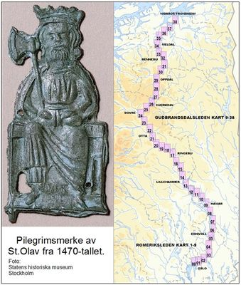 Norsk vegmuseum og Eivind Luthen har merket pilegimsvegen gjennom Øyer, Ringebu, Fron og Sel. I Fron kan den følges fra den kommer inn fra Ringebu over Kjønnås med storslagen utsikt ved passering av elva Frya, langs den til Bersveinshølen, deretter sporet av den gamle tjodveien nær elv og Kongevei før den går bratt opp til Hakkemett og videre til Hundorp med alle gravhaugene. Oppe i lia går den forbi gamle Steig med tilhørighet til Dale-Gudbrand på 1000-tallet. Nord for Listadgard ligger Sygard Grytting, landets eldste herberge fortsatt i drift. Herfra går det bratt fra elvene Augla og Lauvåa forbi Skar og husmannsplassen Øyakleiva til utsikten over dalen. Stien fortsetter forbi Peer Gynt-garden Norgard Hågå, Toksegårdene, Svan, Stø og til lia ovenfor Kvam. Som ledd i utbedringer til kjøreveg på 1700-tallet ble lange strekninger av vegen gjennom Gudbrandsdalen da flyttet ned fra gårdene som lå tildels høyt oppe i dalsidene. Man unngikk derved mange vanskelige partier lenger oppe i liene.
