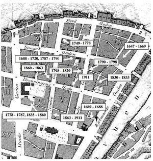 - Geelkerck Isaac van (antagelig fra 1648): Kartskisse over gatenettet i Christiania.