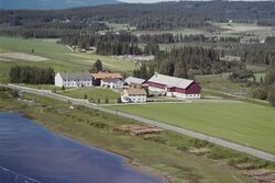 | Hov | 3/1) | Kongsvinger | Innlandet | Hov er antagelig en av de aller eldste gårdene i tidligere Vinger kommune. Så lenge vi vet noe om gården, har den også vært prestegård. I Håkon Håkonssons saga fra 1227 er den nevnt første gangen. Det har da vært kirkested på Hov så lenge det har vært kristent gudshus i Vinger, helt fram til 1698 da kirken i nærheten av Kongsvinger festning ble tatt i bruk, det som i dag er Vinger kirke. | Foto: Widerøe Flyveselskap (2020) |