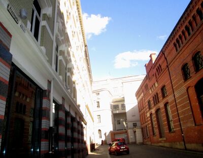Den nedre del av Rosenkrantz' gate var fram til 1864 en del av Prestegata. Øverst i gata ligger nedkjørselen til Stortingets garasjeanlegg fra 1988.