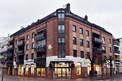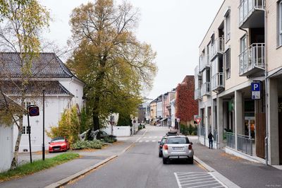 | 17 | Gnr. 172/208. Her lå tidligere byens brannstasjon, oppført i 1904 på tomten etter Nordmannen sykkelfabrikk og en trevarefabrikk som gikk med i bybrannen i 1900. i 1999 flyttet brannvesenet til ny stasjon i Hystadveien 9. Våren 1999 solgte Sandefjord kommune den gamle branstasjonen til firmaet Lystad eiendom som startet rivingen av bygget i februar 2001. Siden ble det oppført leilighetsbygg i seks etasjer her med 18 selveierleiligheter og forretningslokaler på gateplan. Dette sto ferdig på tampen av 2002. | |