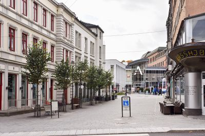 Rådhusgata i Skien sentrum går fra Torggata ved Rådhusplassen til Henrik Ibsens gate ved kjøpesenteret Arkaden.