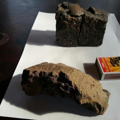 Råjern fra Målsjøen: Siste dag i april 2012 ble dette stykket med bearbeidet myrmalm (av enkelte kalt råjern) funnet i en veikant 20 meter vest for tunet i Målsjøgården i Klæbu kommune. Stykket veier 633 gram, og er magnetisk. På utsiden tydelige spor etter varmebehandling, og små sandkorn som sitter fast på overflaten. Blokken er delt i to, og på bruddflatene kan små hulrom sees. Disse er sannsynligvis luftblærer fra produksjon, og vitner om at jernet ikke var røstet godt nok.