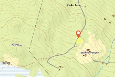 Råliteigen og naboplassene Berget, Stømnervangen (Rålivangen) og Kuskeplassen avmerket på kart fra 2022. Statens kartverk.