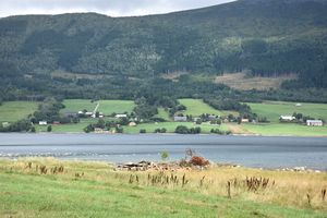 Sandnes gravsted ligger på Holmemstranda, på østsida av Rødvenfjorden.