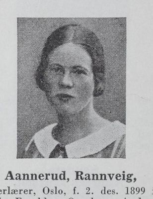Hun vokste opp i hovedstaden, som datter av Aleksandra Josefine (1871-1966) og Anders Aannerud (1865-1936). Faren var overlærer ved Vålerenga skole. Rannveig Aannerud tok artium i 1920 og lærerskoleeksamen i 1923. Hun begynte da å arbeide som lærerinne i Oslo.
