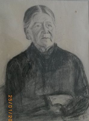 portrett, - slik illustrasjonane viser. Og når det ikkje var ver for å male ute, malte han både interiør, stilleben og blomster.