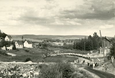Rettenveien med sangere på vei til Rettenparken under Sangens og musikkens dag juni 1947.