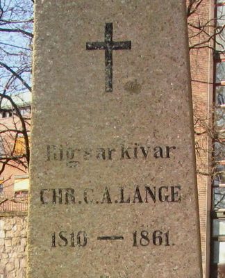 Landets andre riksarkivar, Christian C. A. Lange, er gravlagt på Gamle Aker kirkegård i Oslo. Tittelen Rigsarkivar er benyttet på gravminnet.