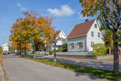 Gatenavnet henspiller antakelig på gatas plassering i bybildet: den danner en bue mot Sarpsborgs tidligere grense mot Tune kommune. Sør for Korsgata består bebyggelsen utelukkende av villaer fra forskjellige epoker.