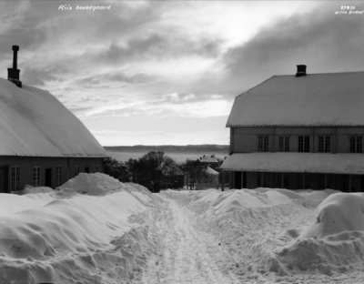 | Hovedbygningen med Ris kirke (under oppføring?) til venstre. Foto: Anders Beer Wilse (1930).