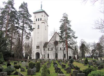 Da kirkens organist, Ludvig Nielsen til inngang intonerte Bachs Preludium og fuge C-dur, var det store kirkeskib fylt til siste plass av en meget representativ forsamling. I den store forsamling såes kirkeministeren, statsråd Trædal, professor, dr. Ihlen, Akers ordfører lektor Schiøtz, byggekomiteens formann, ekspedisjonssjef Zimmer, ekspedisjonssjef Oftenæs, formann i Vestre Akers sognestyre, direktør Magelsen, kirkens arkitekt, Carl Berner, generalkonsul Sam Eide, advokat Munthe-Kaas, tidligere ordførere i Aker m. fl. Presis kl. 11 kom Kongen fulgt av sin adjutant, kaptein Dahl og byggekomiteens formann og kirkens arkitekt. … Efter den høitidlige innvielse samledes man til enkel hyggelig festlighet i Riis skoles gymnastikksal, som var vakkert pyntet med blomster og draperier | ||