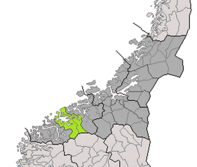 Kart over Midt-Norge med Romsdalskommunene markert i grønt.