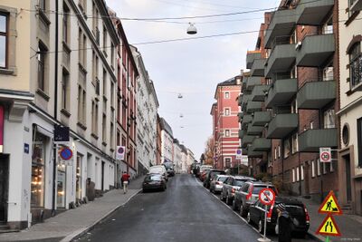 | 13 | 1937 | Boligblokk | Opprinnelig eiendommen «Nøisomhed», epileptikerhjem for kvinner og barn i årene 1908–1911. I dag boligblokk i fire til fem etasjer som strekker seg innover fra gaten i retning Sporveisgata i fallende terreng, 42 leiligheter i varierende størrelser, arkitekt Gunnar Schultz. | |