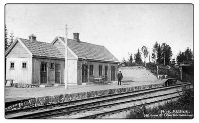 Rudshøgda stasjon i Ringsaker kommune ble opprettet i 1894 som et ledd i Hamar-Sel banen. Stasjonsbygningen ble tegnet av Paul Due og oppført i 1915 av Strømmen Trævarefabrik. Stasjonen het opprinnelig Rud, men navnet ble endret til Rudshøgda i 1926. Bygningen ble ødelagt under krigen og revet i 1947. Dovrebanen har sterk stigning fra Moelv til Rudshøgda. Tunge godstog på vei sørover til Hamar måtte derfor ofte ha assistanselokomotiv til Rudshøgda i damptiden.