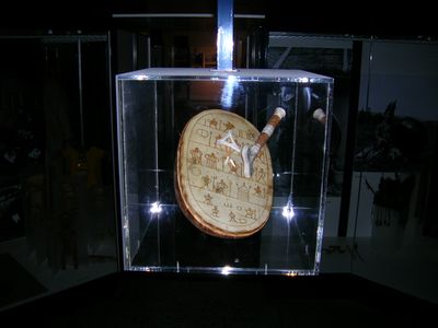 - Ei trommeskål (utan skinn) frå lulesamisk område, no på Norsk Folkemuseum, tidlegare på Kulturhistorisk museum i Oslo.