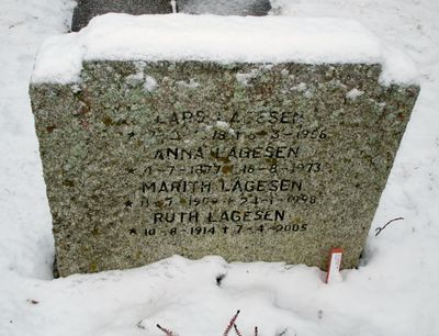 Ruth Lagesen ble bisatt fra Larvik kirke, men hun er gravlagt i familiegrav på Vår Frelsers gravlund i Oslo.