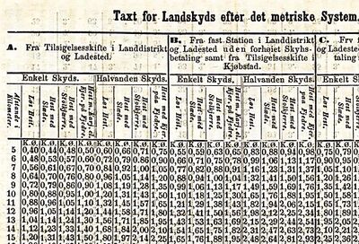 Skyssen kostet da kr. 1,60 pr Mil (= 11 km). Ellers viser guiden til «Jernbanetrain» som går to ganger daglig mellom Kristiania og Kongsvinger.