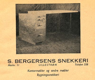 S. Bergersen. Snekkeri ble etablert i Markveien 11, senere Skedsmogata 61, i Lillestrøm i 1934 av Sofus Bergersen (1877-1940). Bedriften ble avviklet i 1984. Det var en av mange snekkerbedrifter i Skedsmo kommune.