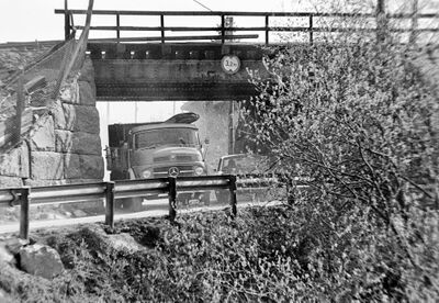 Veiundergangen var mer enn god nok så lenge biltrafikken var beskjeden i både antall og størrelse. Men undergangen var både lav og smal, og som vi ser av bildene ble det vrient når det kom store busser og lastebiler. Rundt 1970 var det endelig klart for å anlegge ny undergang slik den ligger i dag. Bildene forteller med all mulig tydelighet at en ny undergang var nødvendig.